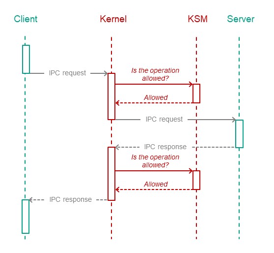 The kernel delivers the IPC message only if Kaspersky Security Module allows delivery